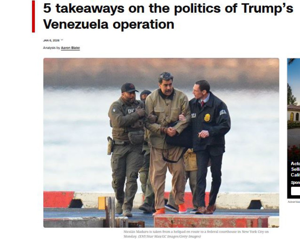 ယခုျဖစ္ရပ္မ်ားသည္ ယခင္က မျဖစ္ႏိုင္ဟုယူ ဆထားၾကသည့္ကမာၻသစ္တစ္ခုသို႔ ေရာက္ရွိလာျခင္း ကိုျပသေနသည္။ အေမရိကန္က အျခားႏိုင္ငံ တစ္ခု ၏ေခါင္းေဆာင္ကို ဖမ္းဆီး႐ုံသာမက ထိုႏိုင္ငံကို တိုက္႐ိုက္စီမံအုပ္ခ်ဳပ္မည္ဟုေၾကညာလိုက္ျခင္း သည္ သမၼတထရမ့္၏ ၿခိမ္းေျခာက္မႈမ်ားမွာ အေျပာ သက္သက္မဟုတ္ဘဲ လက္ေတြ႕ျဖစ္လာႏိုင္ေၾကာင္း သက္ေသျပေနျခင္းပင္ျဖစ္သည္။