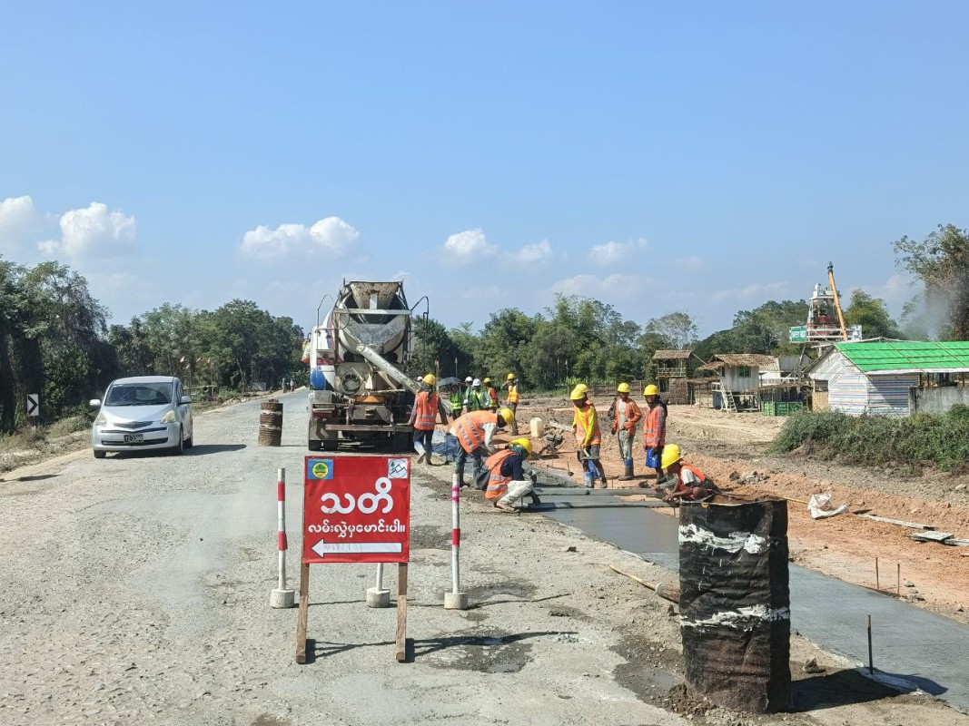 ထိန်းမောင်းရင်းဖြင့် လမ်းပိုင်းကို သတိထား ကြည့်မိရာ လမ်းပခုံးတို့မကောင်းသည်ကို မြင်ရသည်။ သတင်းသမားမျက်စိက အပြစ်ရှာမြင်တတ်သည်ဟု ဆိုလျှင်လည်း ယင်းလမ်းတွင် အသုံးပြုသွားလာသူများ ကိုယ်တိုင်က လမ်းပခုံးမကောင်းကြောင်းအချက်ကို သဘောတူကြလိမ့်မည်ထင်ပါသည်။ လမ်းကား ဆိုး လိုက်၊ ကောင်းလိုက်၊ ဆောက်လုပ်ရေးလုပ်သားများ မြင်လိုက်ဖြင့်မောင်းလာရာ ဘေးတစ်ဖက်တွင် ကျောက်ခွဲစက်ကြီးကိုတွေ့ရသည်။ မြင်ကွင်းအရ ကျောက်ခွဲစက်မှာ တောက်လျှောက် အလုပ်လုပ်နေ ဖွယ်ရှိ၏။ အင်တိုက်အားတိုက် အလုပ်လုပ်နေသည့် လမ်းပြုပြင်ရေးစီမံကိန်းများ ယခုထက် ဆောလျင်စွာ ပြီးစီးနိုင်မည့်အခြေအနေရှိသည်ဟုဆိုနိုင်သည်။