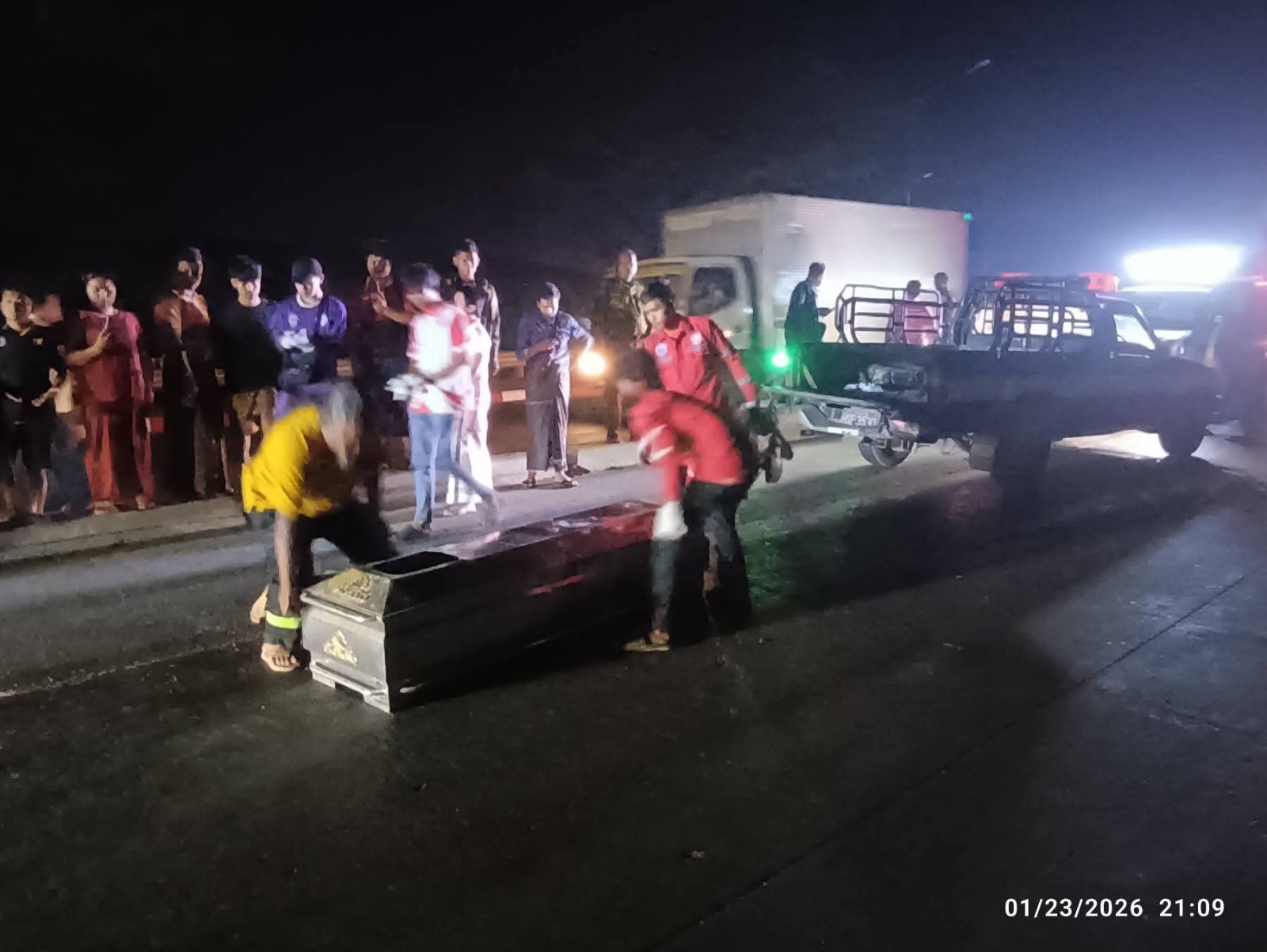 ျဖစ္စဥ္မွာ ယမန္ေန႔ (ဇန္နဝါရီ ၂၃ ရက္) ၊ ညပိုင္း(၈ နာရီ ၄ဝ မိနစ္)အခ်ိန္ခန႔္က ေ႐ႊျပည္သာတံတား ၊ လႈိင္သာယာဘက္အဆင္း မိုင္(၂ဝ)မွတ္တိုင္အနီးတြင္ ျဖစ္ပြားခဲ့ေၾကာင္း သိရသည္။