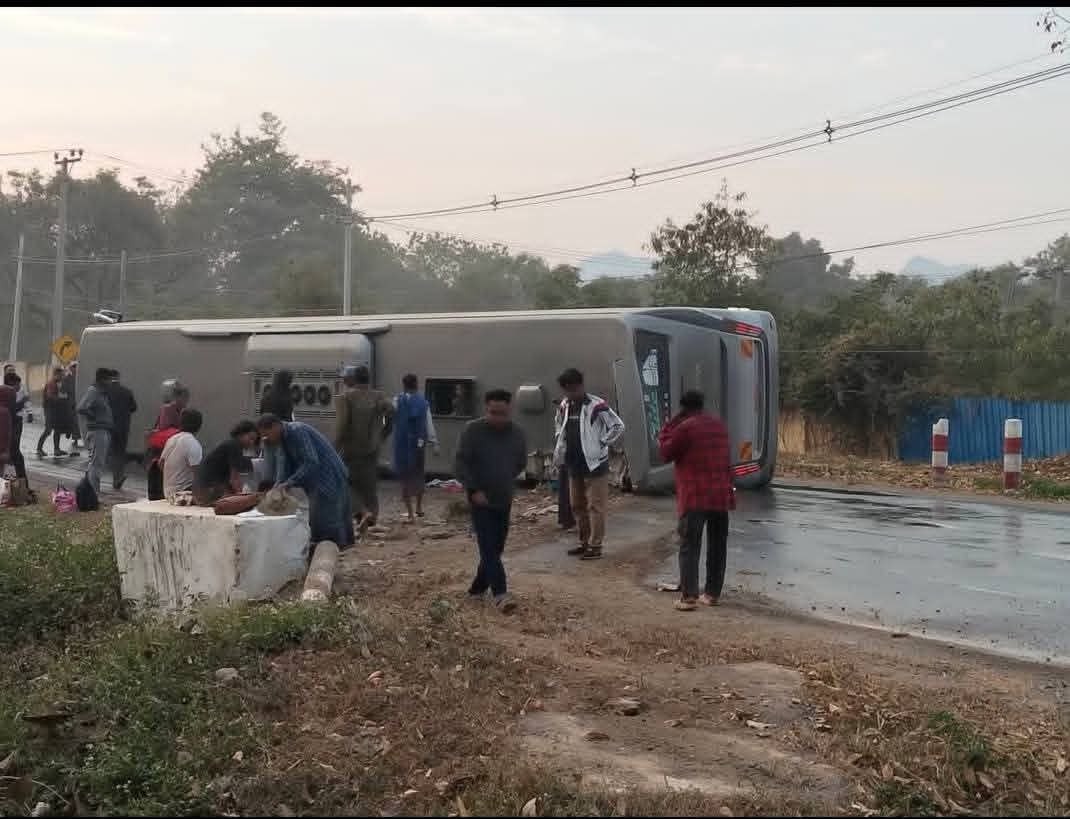 မန္တလေး-ပြင်ဦးလွင်လမ်းတွင် ခရီးသည်တင်ကားတိမ်းမှောက်ရာမှ ခရီးသည် (၁၃) ဦး ထိခိုက်ဒဏ်ရာရ