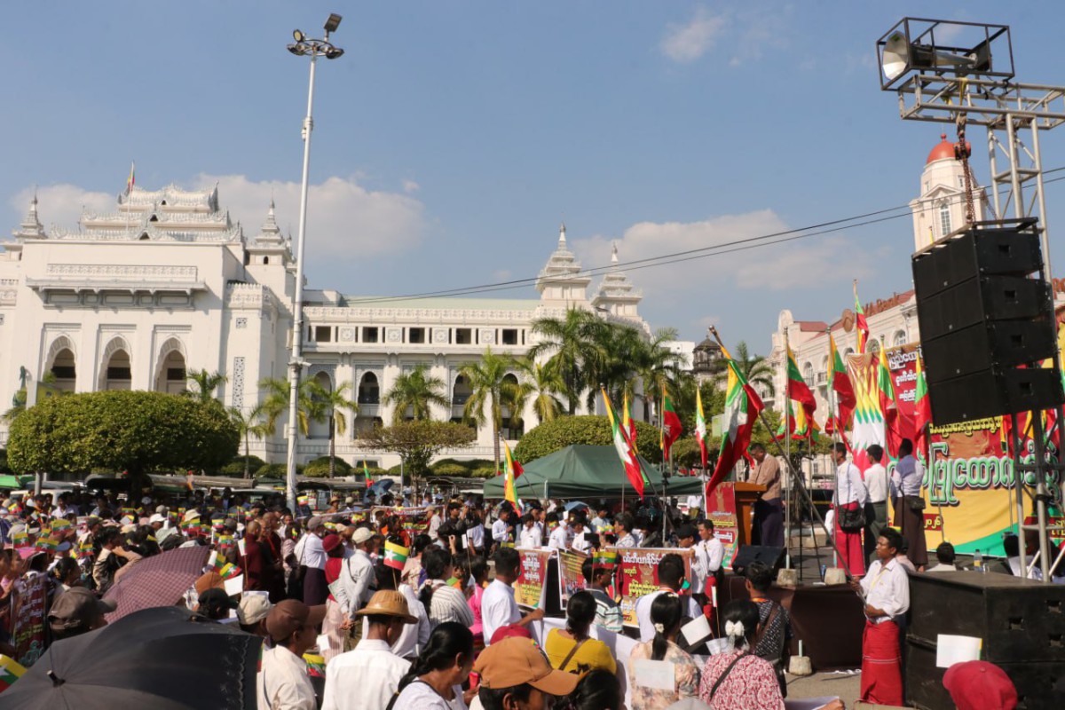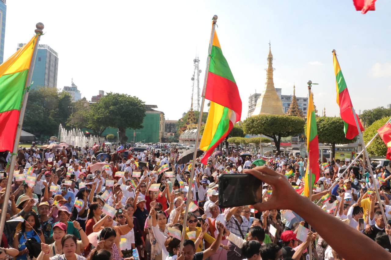 ICJ ရောက်မြန်မာကိုယ်စားလှယ်အဖွဲ့ အားထောက်ခံခြင်းနှင့် ဂမ်ဘီယာနိုင်ငံမှာစွပ်စွဲချက်များအား ရှုံ့ချခြင်းဆန္ဒထုတ်ဖော်ပွဲကို ရန်ကုန်မြို့လယ်ခေါင်ရှိ၊ မဟာဗန္ဓုလပန်းခြံရှေ့ ၊ ယာဉ်ရပ်နားကွင်း ၊ မြို့တော်ခန်းမရှေ့တွင် ယနေ့(ဇန်နဝါရီလ ၂၇ ရက်) မွန်းလွဲ ၂ နာရီက ကျင်းပပြုလုပ်ခဲ့သည်။