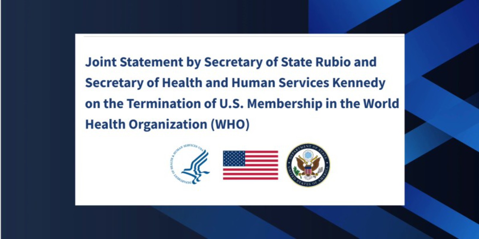အမေရိကန်နိုင်ငံခြားရေးဝန်ကြီး မာကို ရူဘီယို နှင့် ကျန်းမာရေးဝန်ကြီး ရောဘတ် အက်ဖ် ကနေဒီ ဂျူနီယာတို့၏ ပူးတွဲကြေညာချက်တွင် "အမေရိကန်၏ အခွန်ဘဏ္ဍာငွေများကို ပြုပြင်ပြောင်းလဲရန် ပျက်ကွက်သော အဖွဲ့အစည်းတစ်ခုအတွက် ဆက်လက်ဖြုန်းတီးနေမည် မဟုတ်ဘဲ၊ နိုင်ငံအလိုက် ပူးပေါင်းဆောင်ရွက်မှုများဖြင့်သာ ကမ္ဘာ့ကျန်းမာရေးကို ဦးဆောင်သွားမည်" ဟု ဖော်ပြထားသည်။