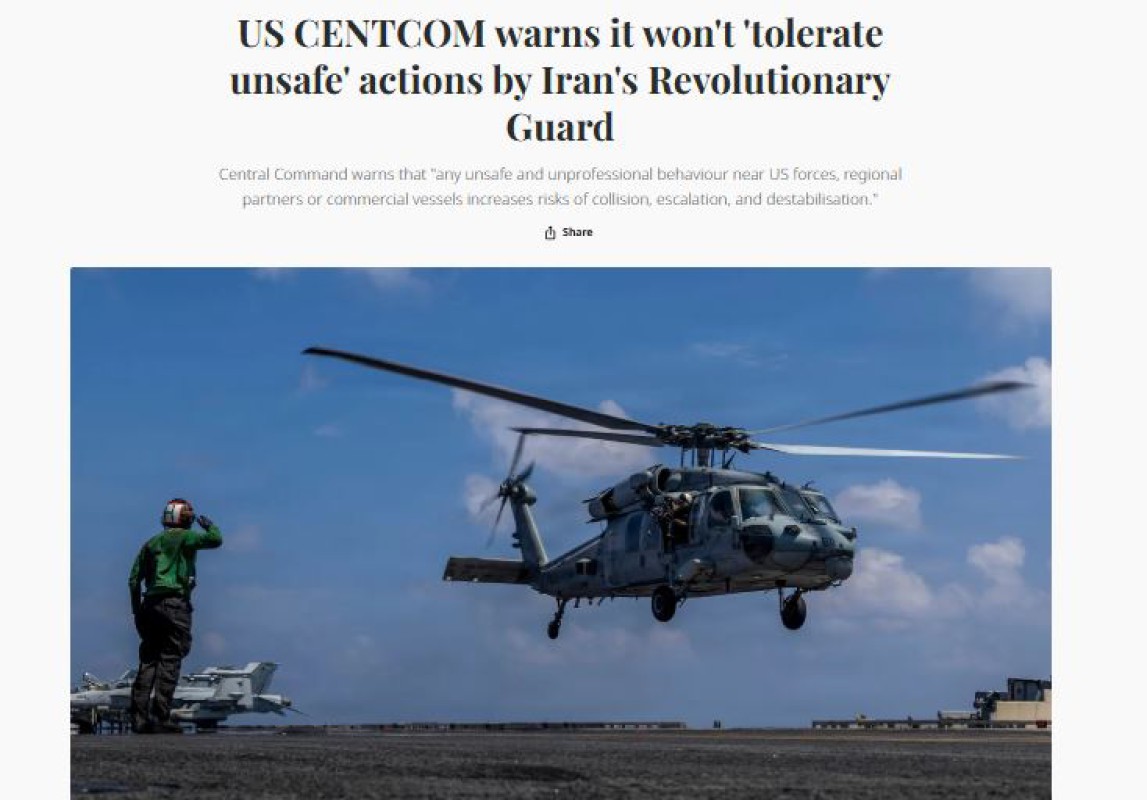 CENTCOM ရဲ႕ထုတ္ျပန္ခ်က္မွာ အီရန္အေနနဲ႔ စစ္ေရးေလ့က်င့္ရာမွာ ႏိုင္ငံတကာ ေရေၾကာင္းသြားလာမႈကို အေႏွာင့္အယွက္မျဖစ္ေစဖို႔နဲ႔ "ပေရာ္ဖက္ရွင္နယ္" ပီပီသသ လုပ္ေဆာင္ဖို႔ တိုက္တြန္းထားပါတယ္။ အေမရိကန္ဟာ လက္ရွိမွာ အေရွ႕အလယ္ပိုင္းေဒသတြင္းမွာ USS Abraham Lincoln ေလယာဥ္တင္သေဘၤာအုပ္စု အပါအဝင္ အေမရိကန္ရဲ႕အင္အားႀကီး စစ္ဘက္ဆိုင္ရာတပ္ျဖန႔္မႈေတြ ရွိေနပါတယ္။ "ကြၽန္ေတာ္တို႔တပ္ဖြဲ႕ဝင္ေတြ ရဲ႕ေဘးကင္းေရးအတြက္ လိုအပ္တာမွန္သမွ် လုပ္ေဆာင္သြားမယ္၊ မဆင္မျခင္လုပ္ရပ္ေတြကို သည္းခံမွာ မဟုတ္ဘူး" လို႔ CENTCOM က ျပတ္ျပတ္သားသားေျပာထားပါတယ္။