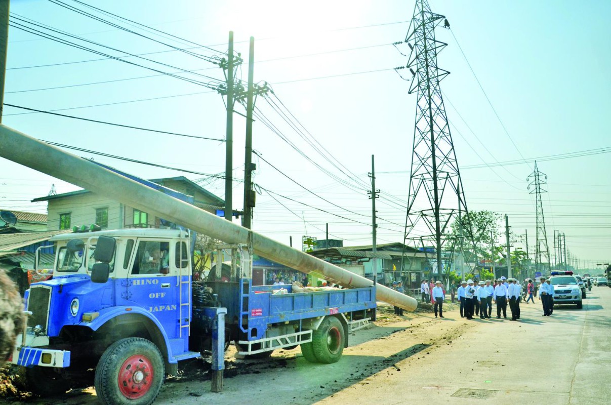 ထိုသို့ရောက်ရှိလာခဲ့ပြီး မြို့ရှောင်ရထားလမ်း ဖောက်လုပ်ရာတွင် လွတ်ကင်းမှုမရှိသည့် ၂၃၀ ကေဗွီ ဘီလူးချောင်း (၂) - တောင်ငူဓာတ်အားလိုင်း ပြောင်းရွှေ့တည်ဆောက်နိုင်ရန် တာဝါတိုင်ဖောင်ဒေးရှင်းလုပ်ငန်းများ ဆောင်ရွက် ပြီးစီးနေမှု အခြေအနေနှင့် တာဝါတိုင်များ စိုက်ထူနိုင်ရန် တိုင်ဆင်ခြင်းလုပ်ငန်းများ ဆောင်ရွက်နေမှုအခြေအနေ တို့ကို ကြည့်ရှုစစ်ဆေးပြီး လိုအပ်သည်များ မှာကြားခဲ့ကြောင်း သိရသည်။