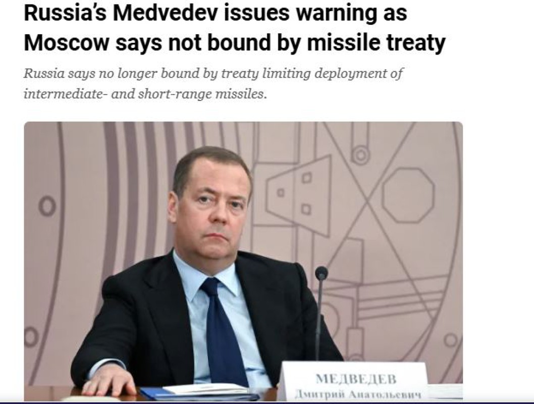 ကမ္ဘာကြီးက အရမ်းအန္တရာယ်များတဲ့နေရာတစ်ခုဖြစ်လာနေပြီး ရုရှားက ကမ္ဘာလုံးဆိုင်ရာပဋိပက္ခထဲကို ဆွဲခေါ်ခံရ မှာမျိုးကို မလိုလားဘူးလို့ ရုရှားလုံခြုံရေးကောင်စီ ဒုဥက္ကဋ္ဌ ဒီမစ်ထရီမက်ဗီဒက်က ထုတ်ပြန်ပြောဆိုခဲ့ပါတယ်။