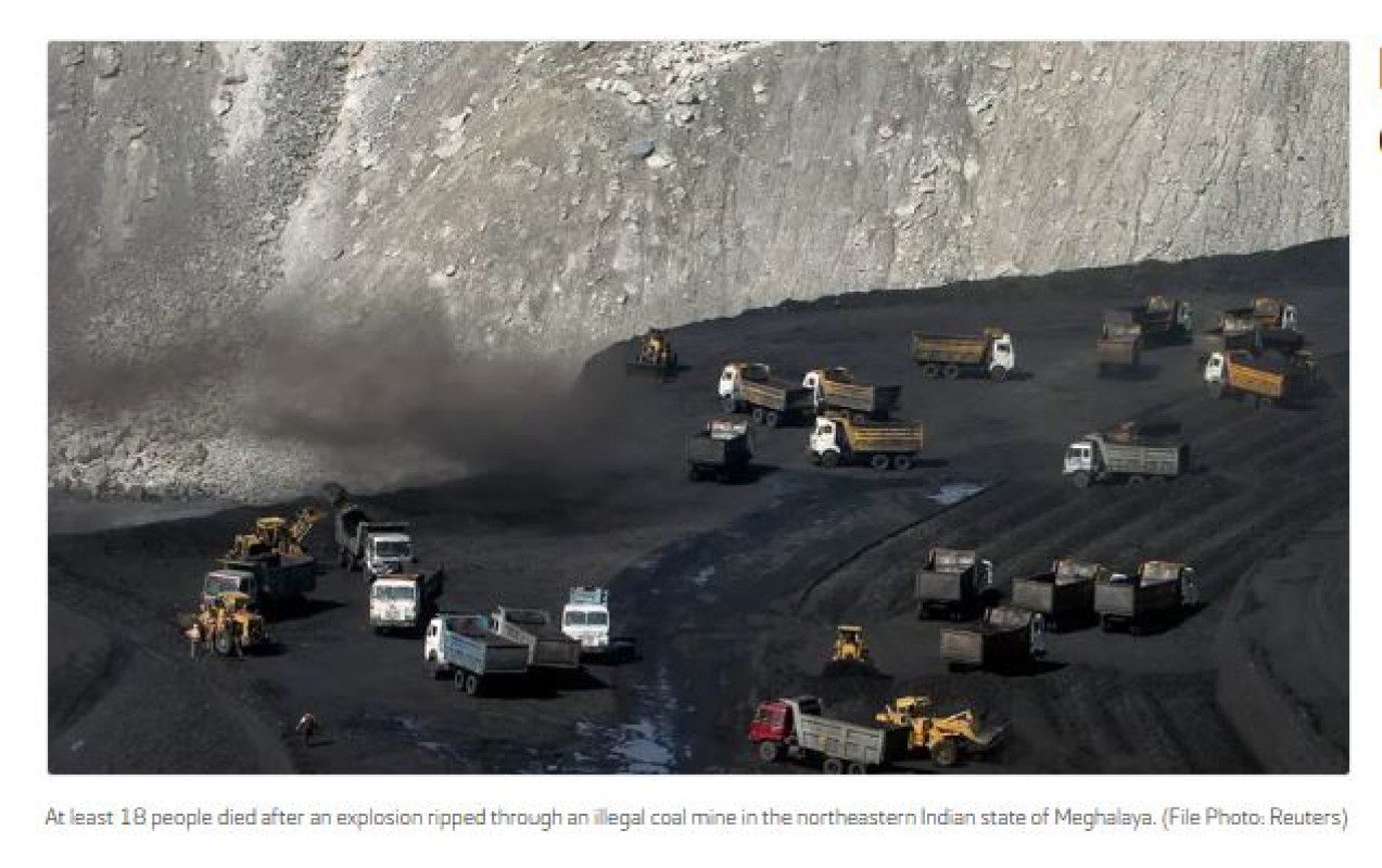 အိႏၵိယႏိုင္ငံ အေရွ႕ေျမာက္ပိုင္း မီဂါလာယာျပည္နယ္မွာရွိတဲ့ တရားမဝင္ေက်ာက္မီးေသြးတြင္းတစ္ခုမွာ ေပါက္ကြဲမႈ တစ္ခုျဖစ္ပြားခဲ့ရာ အနည္းဆုံးလူ(၁၈)ဦးေသဆုံးခဲ့တယ္လို႔ တာဝန္ရွိသူေတြက ထုတ္ျပန္ေျပာၾကားခဲ့ပါတယ္။ ရဲတပ္ဖြဲ႕က “ေပါက္ကြဲမႈျဖစ္ပြားခဲ့ၿပီးေနာက္ ကယ္ဆယ္ေရးလုပ္ငန္းေတြကို ခ်က္ခ်င္းလုပ္ေဆာင္ခဲ့ပါတယ္။ ေပါက္ကြဲမႈျဖစ္ပြားတဲ့အခင္းေနရာကေန ႐ုပ္အေလာင္း(၁၈)ေလာင္းကို ရွာေဖြေတြ႕ရွိခဲ့ပါတယ္” လို႔ ေျပာခဲ့ပါတယ္။