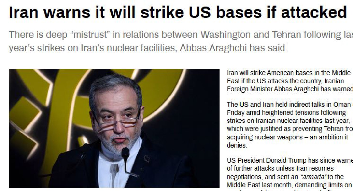 အမေရိကန်က တိုက်ခိုက်မှုတွေလုပ်ဆောင်လာခဲ့မယ်ဆိုရင် အရှေ့အလယ်ပိုင်းမှာရှိတဲ့ အမေရိကန်စစ်အခြေစိုက် စခန်းတွေကို အီရန်က တိုက်ခိုက်သွားမယ်လို့ အီရန်နိုင်ငံခြားရေးဝန်ကြီး အာဘတ်စ်အာဂရာချီက သတိပေးပြောဆို ခဲ့ပါတယ်။