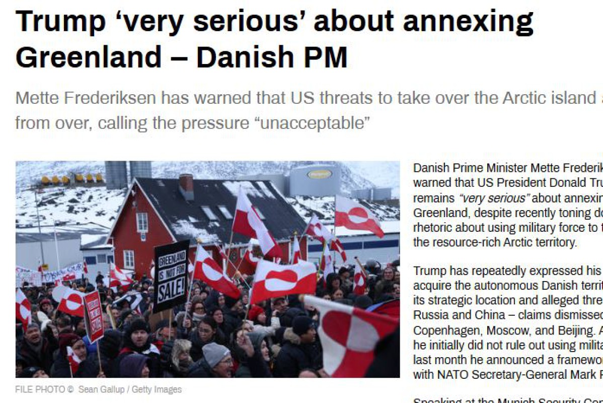 အရင္းအျမစ္ႂကြယ္ဝတဲ့ဂရင္းလန္းကြၽန္းကိုသိမ္းပိုက္ဖို႔နဲ႔ပတ္သက္ၿပီး အေမရိကန္သမၼတေဒၚနယ္ထရမ့္က အေလးအနက္ထားေနဆဲျဖစ္တယ္လို႔ ဒိန္းမတ္ဝန္ႀကီးခ်ဳပ္ မက္တီဖရက္ဒဲရစ္ဆန္က သတိေပးေျပာဆိုခဲ့ပါတယ္။