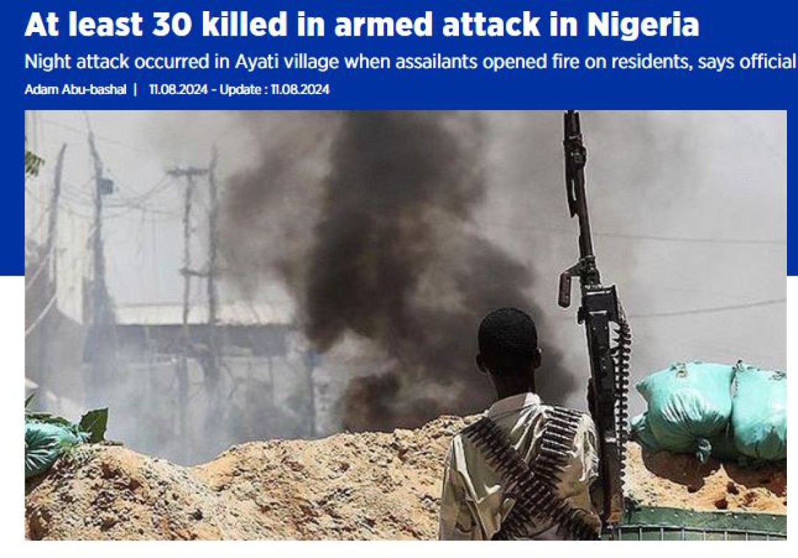 ႏိုင္ဂ်ီးရီးယားႏိုင္ငံမွာ ေသနတ္သမားေတြရဲ႕ဝင္ေရာက္စီးနင္းတိုက္ခိုက္မႈေၾကာင့္ အနည္းဆုံးလူ(၃ဝ)ဦး ေသဆုံး