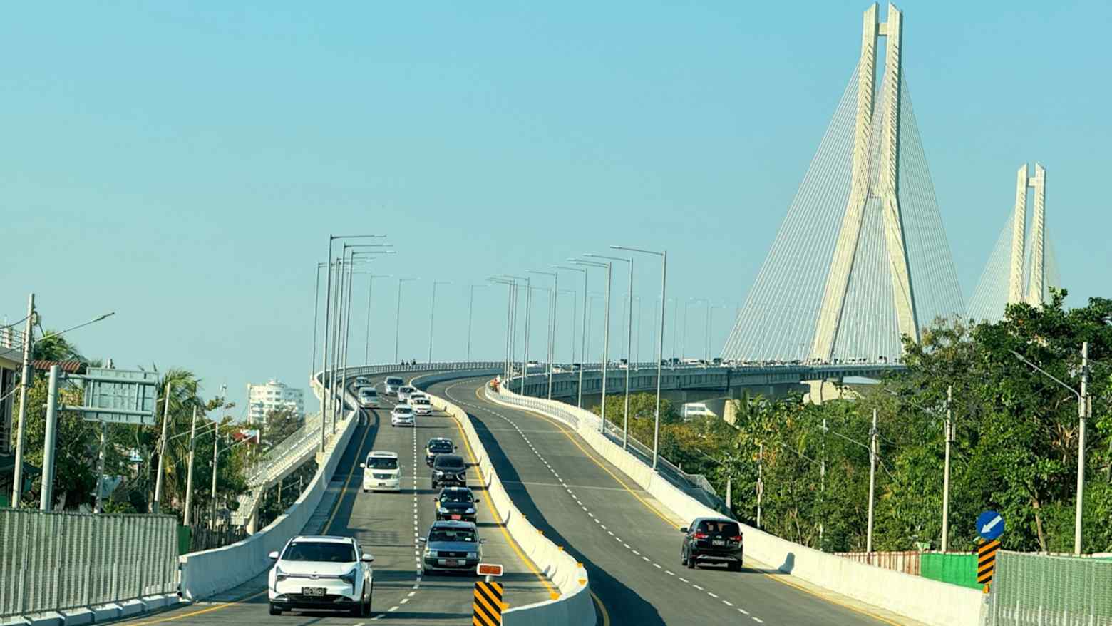The Yangon-Dala Bridge is the highest free-flowing bridge in Myanmar. It is a cable-stayed bridge, and the approach and ramp bridges were constructed taking into account gradient requirements.