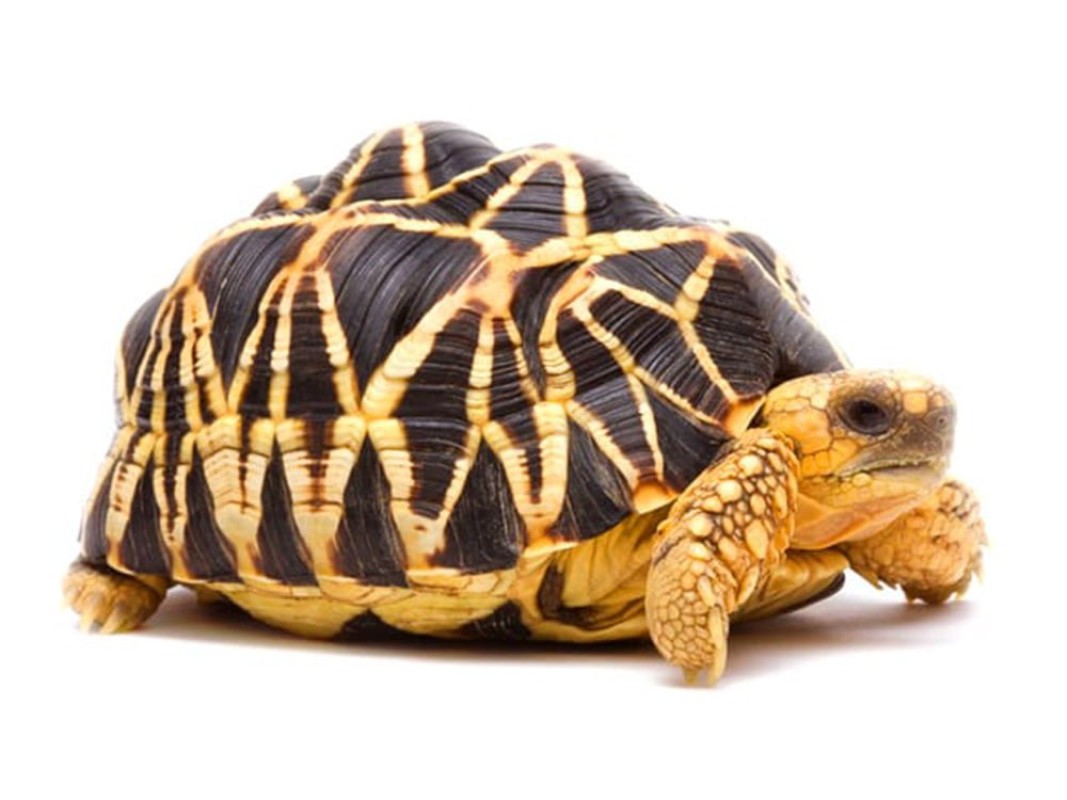 The Burmese Star Tortoise remains critically endangered and endemic to the dry zone of central Myanmar, renowned as the most beautiful among star tortoises. This medium-sized reptile grows to 26-30 centimeters in length, featuring a black domed shell adorned with yellow radiating star patterns, along with a yellow head and legs marked by darker patches, making it both visually striking and notably intelligent.