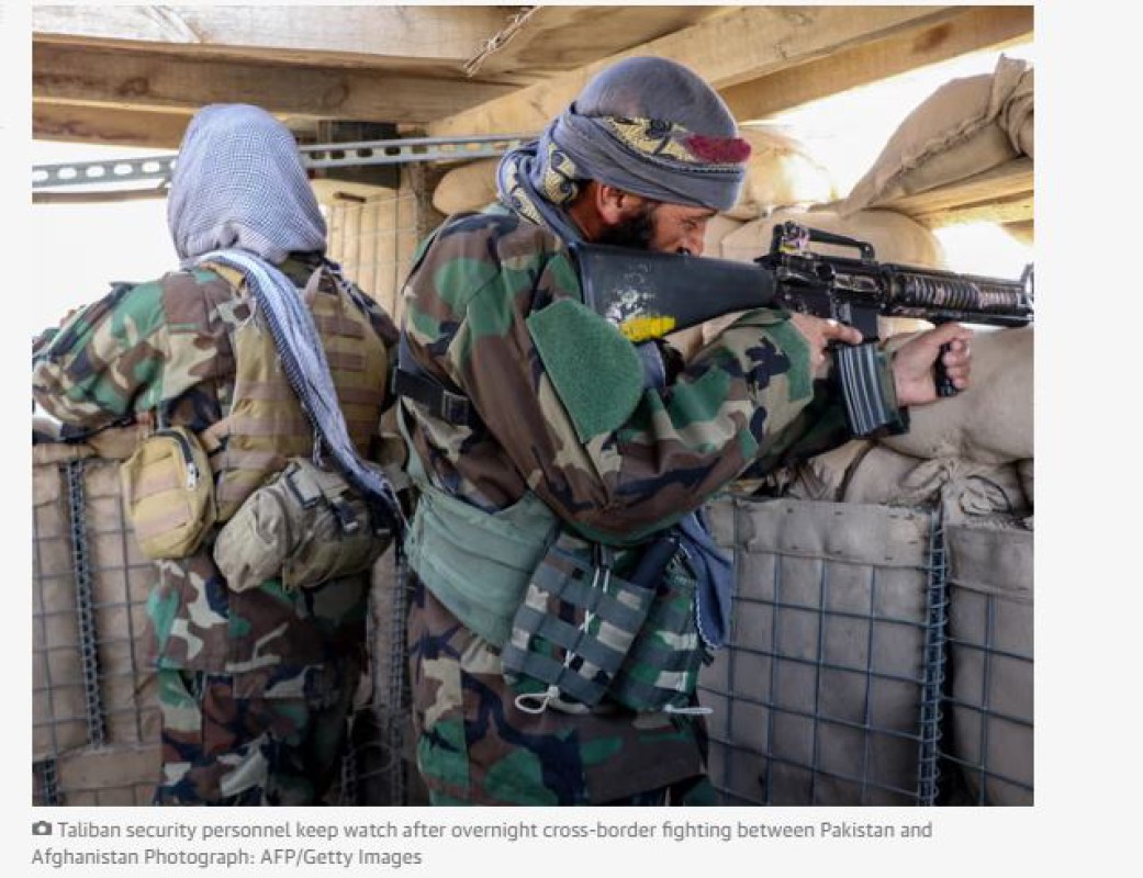 ပါကစ္စတန်ဟာ အာဖန်ဂန်နစ္စတန် နိုင်ငံကို လေကြောင်းတိုက်ခိုက်မှု အများအပြားလုပ်ဆောင်ခဲ့ပြီး မြို့တော် ကဘူးလ်မြို့ကို လေကြောင်းတိုက်ခိုက်ခဲ့တယ်လို့ သိရပါတယ်။ တာလီဘန်အဖွဲ့တွေဟာ ပြီးခဲ့တဲ့ရက်ပိုင်းမှာ နယ်စပ်ဒေသရှိ ပါကစ္စဆန်စစ်အခြေစိုက်စခန်းများကို အလစ်တိုက်ခိုက်ခဲ့ရာ တိုက်ပွဲများ ဖြစ်လာခဲ့တယ်လို့ သိရပါတယ်။ ပါကစ္စတန် နဲ့ တာလီဘန်ကြား ဖြစ်ပွားနေတဲ့စစ်ပွဲများကို အဆုံးသတ်ဖို့ တရုတ်၊ ဆော်ဒီအာရေဗျ၊ အီရန် နဲ့ ကုလသမဂ္ဂတို့က တိုက်တွန်းတောင်းဆိုနေတယ်လို့ သိရပါတယ်။
