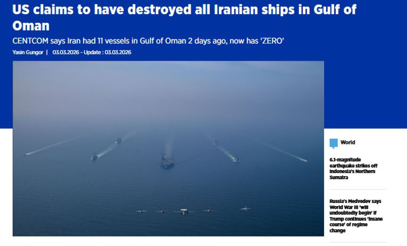 အေမရိကန္စစ္တပ္က ၿပီးခဲ့သည့္ ႏွစ္ရက္က အီရန္အစိုးရသည္ အိုမန္ပင္လယ္ေအာ္တြင္ စစ္သေဘၤာ ၁၁ စင္း ပိုင္ဆိုင္ခဲ့ေသာ္လည္း လက္ရွိအခ်ိန္တြင္ အိုမန္ပင္လယ္အတြင္း အီရန္စစ္သေဘၤာ တစ္စင္းမွ် မက်န္ေတာ့ေၾကာင္းသတင္းထုတ္ျပန္ထားသည္။