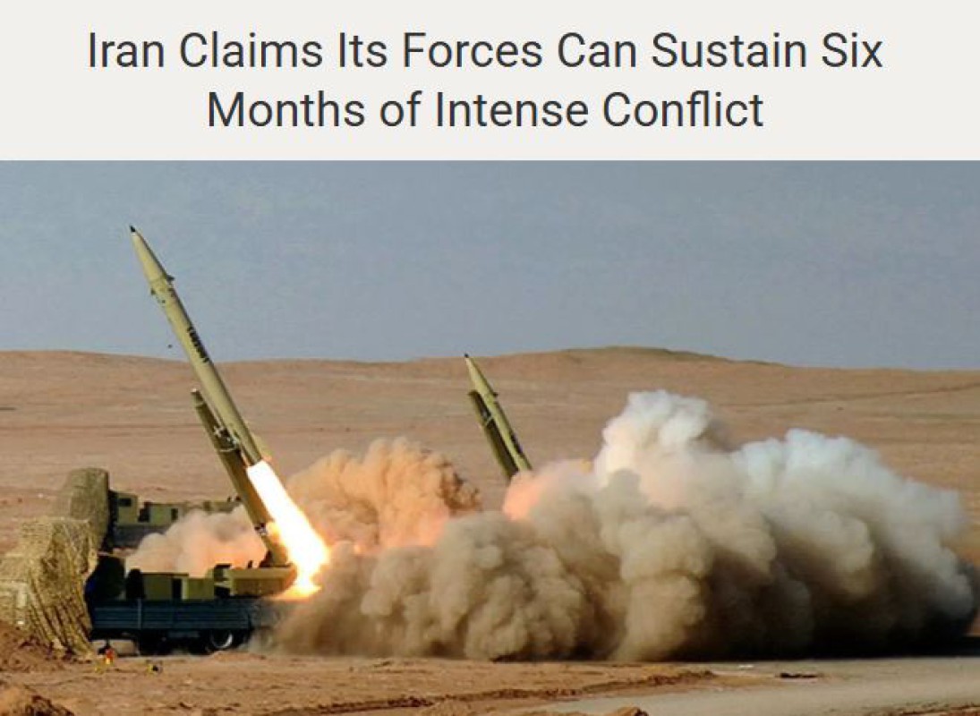 အီရန်က အမေရိကန်နဲ့အစ္စရေးတို့ကို ဆန့်ကျင်တဲ့ပြင်းထန်တဲ့စစ်ပွဲကို နောက်ထပ်အနည်းဆုံး အချိန်(၆)လ လောက်အထိ တိုက်ခိုက်နိုင်တယ်လို့ အီရန်စစ်တပ်က ထုတ်ပြန်ပြောကြားခဲ့ပါတယ်။