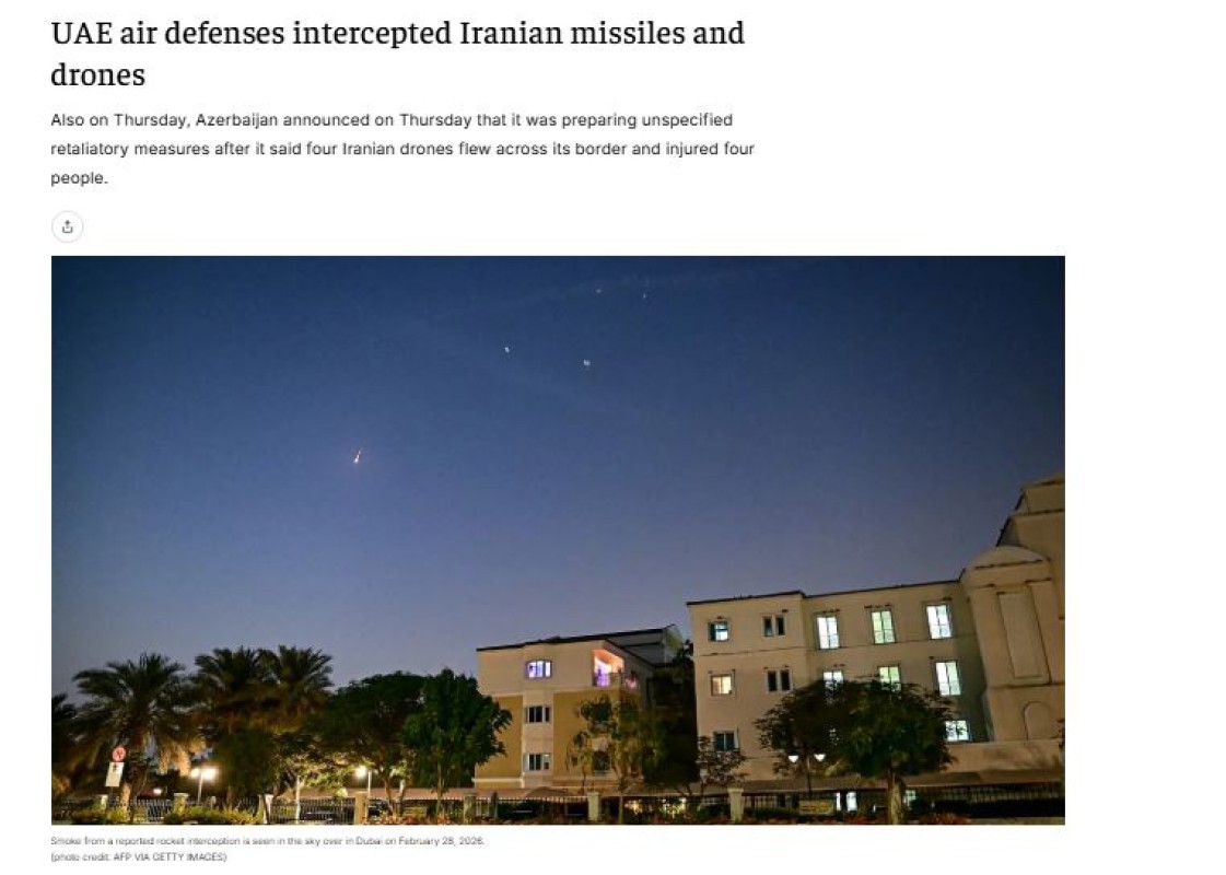 အီရန်နဲ့အမေရိကန်ဦးဆောင်တဲ့ မဟာမိတ်နိုင်ငံများဖြစ်နေတဲ့စစ်ပွဲအတွင်း ယူအေအီး နိုင်ငံက အီရန်က ပစ်ခတ်ခဲ့တဲ့ ဒရုန်းနဲ့ဒုံးကျည်တွေရဲ့ (၉၂) ရာခိုင်နှုန်းကနေ (၁ဝဝ) ရာခိုင်နှုန်းထိ ပစ်ချနိုင်ခဲ့ပါတယ်လို့ သိရပါတယ်။