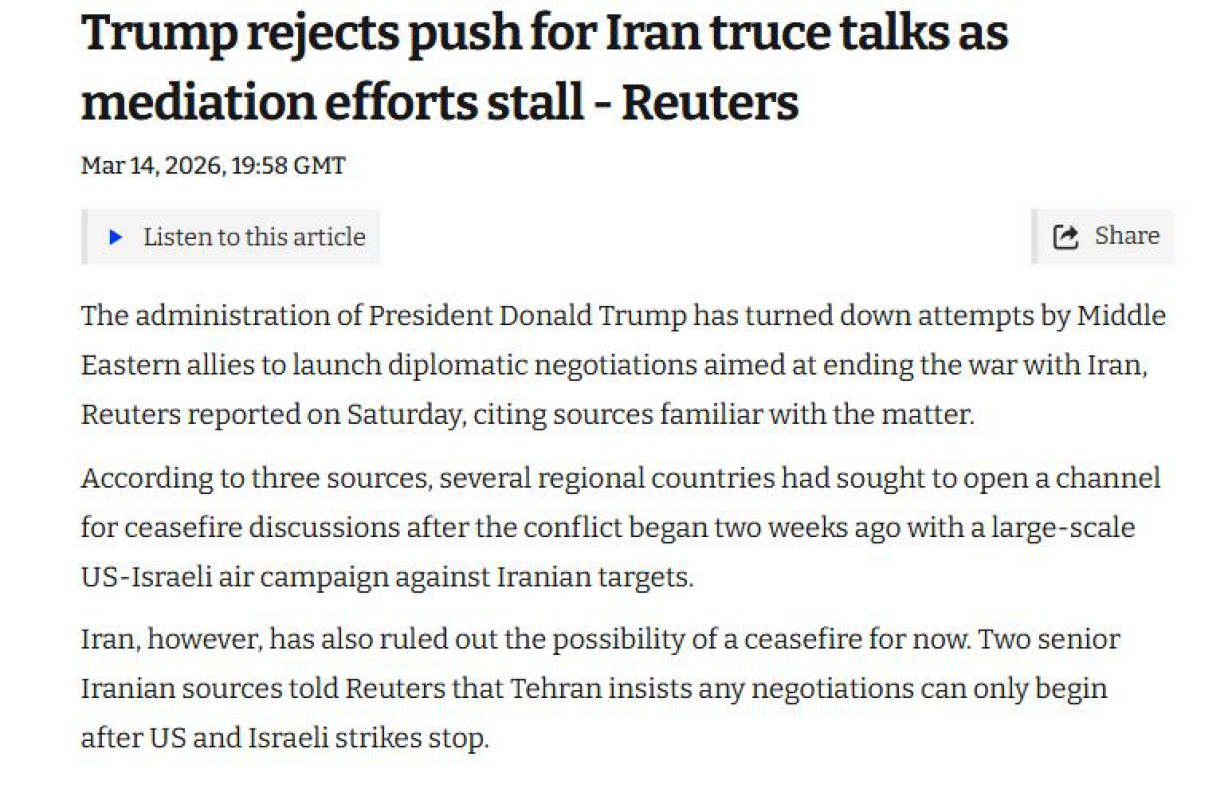 အမေရိကန် နဲ့အစ္စရေးတို့ရဲ့ အီရန်အပေါ် လေကြောင်းတိုက်ခိုက်မှုများ တတိယသီတင်းပတ်သို့ ရောက်ရှိလာချိန်မှာ အပစ်အခတ်ရပ်စဲရေး ကြားဝင်စေ့စပ်မှုများကို အမေရိကန်သမ္မတ ဒေါ်နယ်ထရမ့်က ပယ်ချလိုက်ပါတယ်။