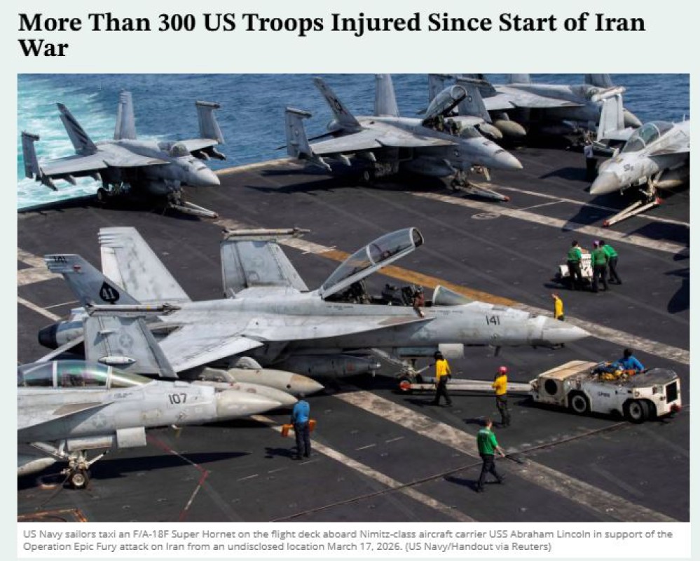 အမေရိကန်ရေတပ်ဗိုလ်ကြီး တင်မ်ဟော့ကင်းစ်က "Operation Epic Fury စတင်တဲ့အချိန်တည်းက လက်ရှိအချိန်အထိ အမေရိကန်စစ်သား(၃၀၃)ဦးခန့် ထိခိုက်ဒဏ်ရာရရှိခဲ့ပါတယ်။ ဒါပေမယ့် ဒဏ်ရာတွေအားလုံးက အသေးစားတွေပဲဖြစ်ပြီး စစ်သား(၂၇၃)ဦးက တာဝန်ပြန်လည်ထမ်းဆောင်ခဲ့ကြပါတယ်” လို့ ပြောခဲ့ပါတယ်။