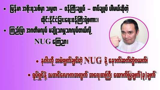 မြန်မာ အစိုးရသစ်မှာ သမ္မတ - ဝန်ကြီးချုပ် - တပ်ချုပ် ပါမယ်ဆိုတဲ့ ထိုင်းနိုင်ငံခြားရေးဝန်ကြီးရဲ့စကား၊ ကြည်ပြာ အဂတိမလုပ် မချိုသာမှုသာလုပ်တယ်လို့ NUG ကြေညာ၊ နဂါးကို အမဲဖျက်ချင်တဲ့ NUG နဲ့ နောက်ဆက်တွဲဂယက်၊ ရုပ်ရှင်နဲ့ သဘင်လောကအတွက် အရေးတကြီး ထောက်ပြချက်(၃)ချက် (၁၉-၂-၂ဝ၂၆)