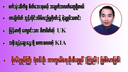 လွတ်ငြိမ်းချမ်းသာ /သက်သာခွင့်တွေနဲ့ ဂုဏ်ထူးဆောင် ဆုတံဆိပ်တွေ ဝေစည်တဲ့ တောင်သူလယ်သမားနေ့၊ ရဲနဲ့ စစ်သားတွေ တာဝန်ထမ်းဆောင်မှု အထူးထောက်ပံ့ကြေး ရပြီ၊ သားပေါင်း- ဒါးက တံတား နှစ်စင်းအတွက် လယ်သမားတွေရဲ့အသံ၊ အမေရိကန်-အီရန်စစ်ပွဲ ရဲ့ လောင်စာဆီ ဂယက် မြန်မာ ဘာပြင်ထားပြီလဲ။ (၂-၃-၂ဝ၂၆)