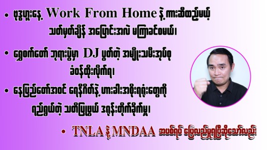 ဗုဒ္ဓဟူးနေ့ Work From Home နဲ့ ကားဆီထည့်မယ့် သတ်မှတ်ချိန် အပြောင်းအလဲ မကြာခင်စမယ်၊ ရွှေစက်တော် ဘုရားပွဲမှာ DJ ပွတ်တဲ့ အမျိုးသမီးအုပ်စု ခံဝန်ထိုးလိုက်ရ၊ နေပြည်တော်အဝင် ရေနီဂိတ်နဲ့ ဟားခါးအစိုးရရုံးတွေကို ရည်ရွယ်တဲ့ သတိပြုဖွယ် ဒရုန်းတိုက်ခိုက်မှု၊ TNLA နဲ့ MNDAA အပစ်ရပ် ပြေလည်မှုရပြီဆိုသော်လည်း (၂၂- ၃ - ၂ဝ၂၆)