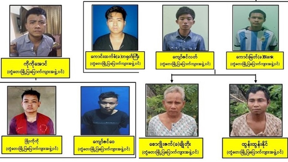 ရန်ကုန်တိုင်း၊ မြောက်ဥက္ကလာပမြို့နယ်ရှိ မြတ်မောင်စိန်ရွှေရတနာဆိုင်အား ဓါးပြတိုက်မှုတွင် ပူးပေါင်းပါဝင်သူ (၉)ဦးဖြစ်သော ကိုကိုအောင်၊ ပပလှိုင်၊ ကောင်းထက်စံ၊ ကျော်ဇင်လတ်၊ ကောင်းမြတ်၊ ဖြိုးကိုကို၊ ကျော်ဇင်ဝေ၊ စောဂျိုးဇက်နှင့် ထွန်းထွန်းနိုင်တို့ကို ဖမ်းဆီးရမိထားကြောင်း နစကမှ ထုတ်ပြန်ခဲ့သည်။