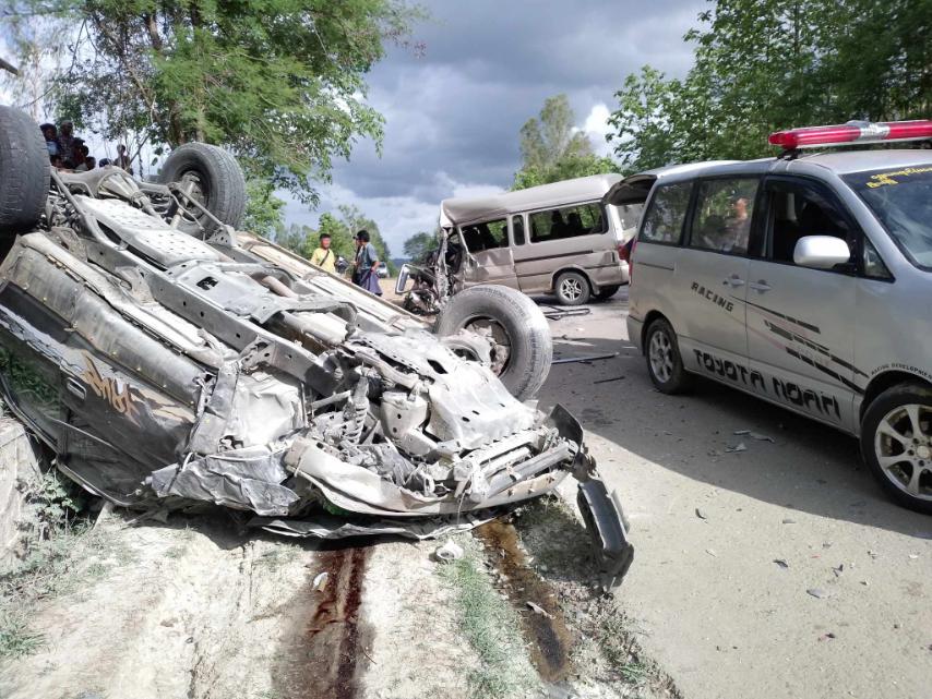 "မ်က္ႏွာခ်င္းဆိုင္ ကားခ်င္းခ်ိတ္ၿပီးတိုက္မိသြားတာ။ အရွိန္မ်ားတာလည္းပါတာေပါ့။ ခရီးသည္တင္ ကားက ရခိုင္ကေန ေမာ္လၿမိဳင္ သြားတဲ့ကား၊ အိမ္စီးကားက ေနျပည္ေတာ္ကေန ပလက္ဝကို ျပန္တဲ့ကား။ ခရီးသည္တင္ကားရဲ႕ ယာဥ္ေမာင္းဆုံးတယ္။ က်ား (၁)ဦး၊ မ(၁)ဦး ထိခိုက္ဒဏ္ရာရတယ္။ အိမ္စီးကားက အမ်ိဳးသားတစ္ဦး ဒဏ္ရာရတယ္" ဟု ေျမျပင္လူမႈကူညီေရးအသင္းမွ တာဝန္ရွိသူတစ္ဦးက NP News ကိုေျပာသည္။