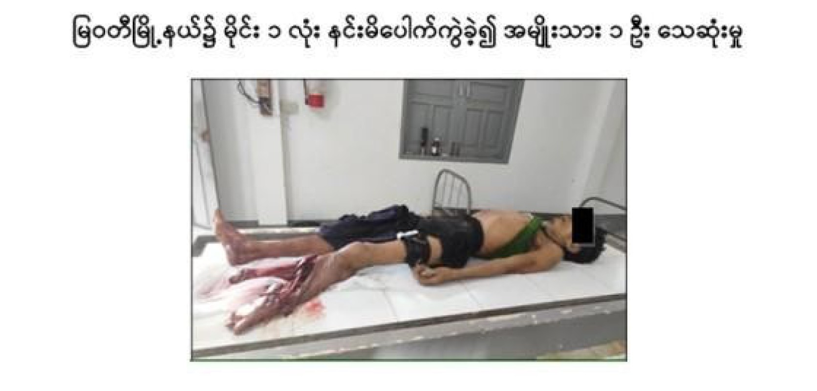 အဆိုပါကျေးရွာတွင်နေထိုင်သော သေဆုံးသူအမျိုးသားသည် ၎င်းနေအိမ်မှ မျှစ်ချိုးရန် သွားရောက်စဉ် ပုညရှင် ဘုန်းကြီးကျောင်း၏တောင်ဘက် ကိုက် (၃ဝဝ)ခန့် အကွာတွင် မိုင်းတစ်လုံးအား နင်းမိ၍ ပေါက်ကွဲမှုဖြစ်ပွားခဲ့ကြောင်း ရဲတပ်ဖွဲ့မှ ပြောဆိုထားသည်။