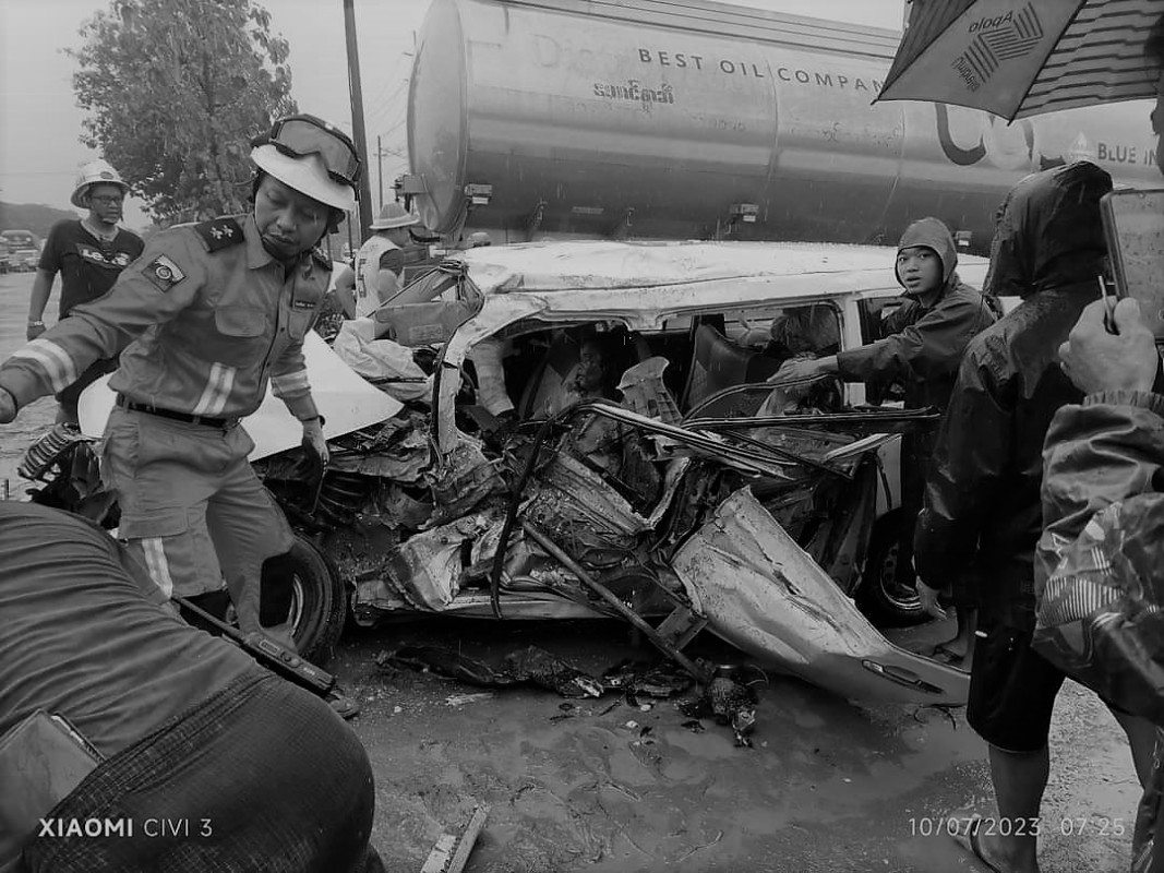 “Probox တက္ကစီပေါ်မှာလိုက်ပါလာတဲ့ အသက်(၂)နှစ်အရွယ်ကလေးငယ်မိန်းကလေးတစ်ဦးရယ်။ မိခင်ဖြစ်တဲ့သူရယ်။ ဖွားအေဖြစ်သူတို့ကတော့ နေရာမှာတင်ပွဲချင်းပြီးဆုံးတယ်။ ခေါင်းခန်းထဲမှာလဲ အမျိုးသမီးတစ်ယောက်ညှပ်နေတာနဲ့ ဆွဲထုတ်လိုက်တော့။ အဲဒီအမျိုးသမီးက ဘယ်ဘက်လက်မောင်းကျိုးတာကြောင့် ဆေးရုံပို့လိုက်တဲ့အချိန် နာရီဝက်အကြာမှာပဲ ဆေးရုံမှာဆုံးသွားပါတယ်” ဟု ၎င်းက ဆက်လက်ပြောသည်။