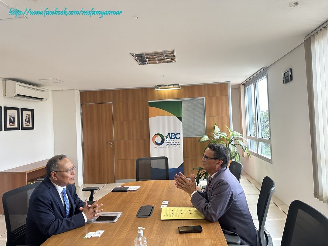 ပြီးခဲ့သည့် နိုဝင်ဘာလ (၁၇)ရက်တွင် ဘရာဇီးလ်နိုင်ငံဆိုင်ရာ မြန်မာသံအမတ်ကြီး ဦးအောင်ကျော်ဇံ နှင့် ဘရာဇီးလ်နိုင်ငံခြားရေးဝန်ကြီးဌာနလက်အောက်ရှိ ဘရာဇီးလ် ဖွံ့ဖြိုး တိုးတက်ရေးအေဂျင်စီ၊ အာဖရိက၊ အာရှ နှင့် သမုဒ္ဒရာကျွန်းစုဒေသဆိုင်ရာ နည်းပညာအထွေထွေပူးပေါင်းဆောင်ရွက်မှုဌာနခွဲ၏ အကြီးအကဲဖြစ်သူ Mr. Nelci Peres Caixeta တို့ တွေ့ဆုံခဲ့ကြောင်း သိရသည်။