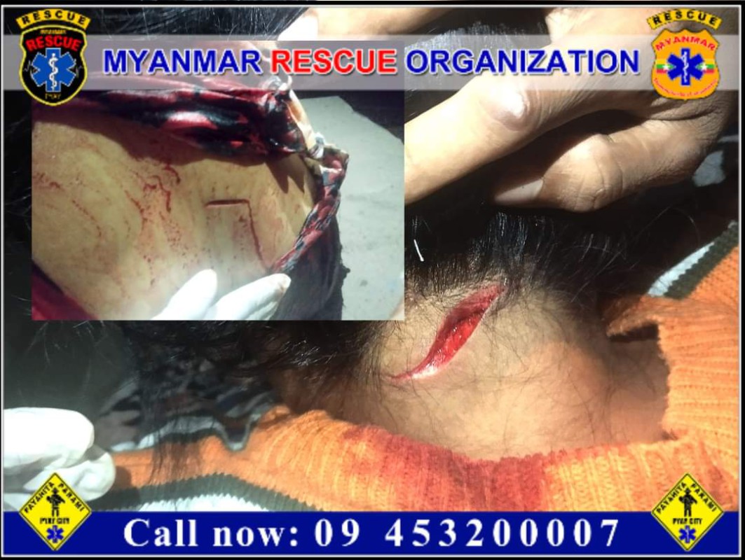 အဆိုပါ ဖြစ်စဉ်တွင် ဓားဖြင့်အထိုးခံရသည့် အသက်(၆၀)နှစ်ဝန်းကျင် အမျိုးသမီးတွင် ဇက်ပြတ်ရှဒဏ်ရာနင့် ခါးထိုးသွင်း ဒဏ်ရာများ ရရှိခဲ့ကြောင်း သိရသည်။