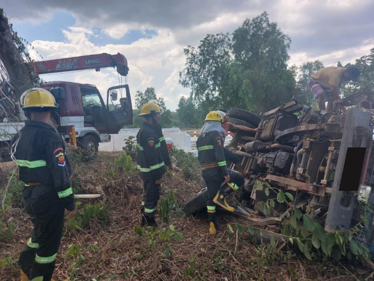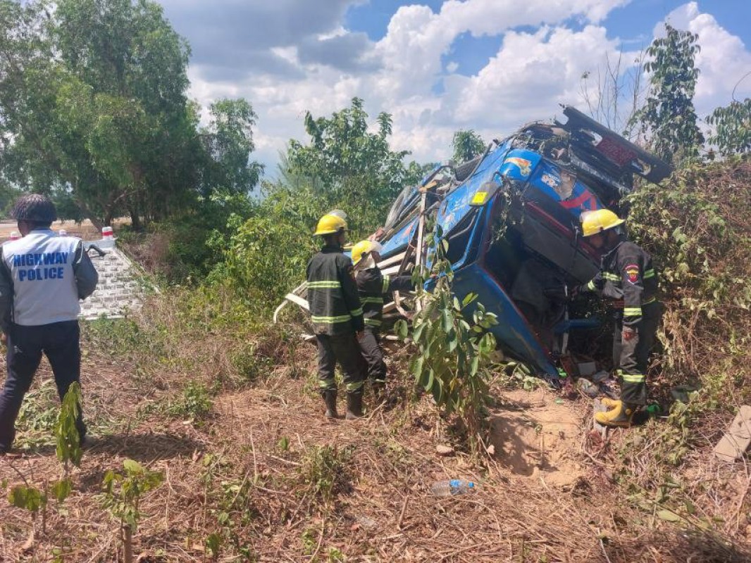 အမြန်လမ်း၌ ကုန်တင်ကားတစ်စီး တိမ်းမှောက်ခဲ့ရာ အမျိုးသား (၂)ဦး ထိခိုက်ဒဏ်ရာရ