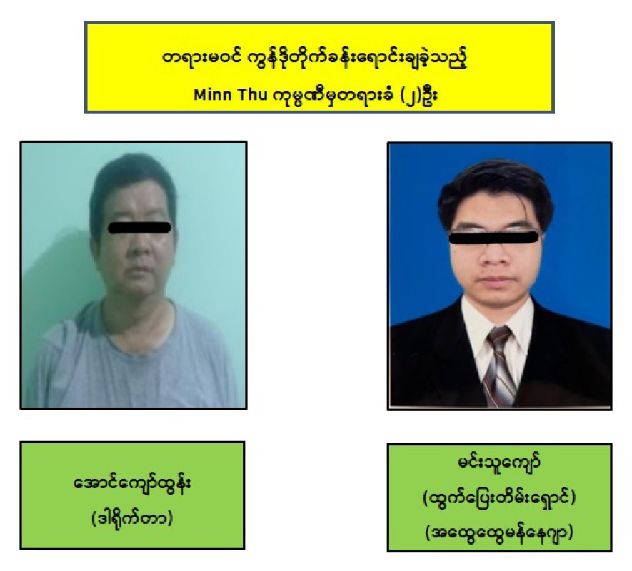 ထို့နောက် စစ်ဆေးဖော်ထုတ်ချက်များအရ Minn Thu ကုမ္ပဏီမှ ဒါရိုက်တာ ဦးအောင်ကျော်ထွန်းနှင့် ထွက်ပြေးတိမ်ရှောင်နေသည့် အထွေထွေမန်နေဂျာ ဦးမင်းသူကျော်တို့သည့် ထိုင်းနိုင်ငံ၊ ဘန်ကောက်မြို့ရှိ ကွန်ဒိုတိုက်ခန်းများအား ပြည်တွင်း၌ တရားဝင်ရောင်းချရန် သက် ဆိုင်ရာသို့ သတင်းပေးပို့ ခွင့်ပြုချက်ရယူခြင်းမရှိဘဲ အရောင်းပြပွဲများကို ရန်ကုန်မြို့၊ ဆီဒိုးနားဟိုတယ်၌ (၂)ကြိမ်တိုင်တိုင်ပြုလုပ်ခဲ့ကြောင်း သိရသည်။