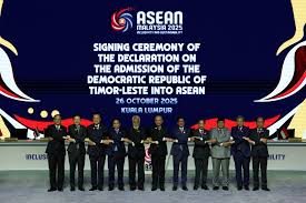 မေလးရွားႏိုင္ငံက အိမ္ရွင္အျဖစ္ လက္ခံက်င္းပခဲ့တဲ့ (၄၇)ႀကိမ္ေျမာက္အာဆီယံ ထိပ္သီးအစည္း အေဝးမွာ အေရွ႕တီေမာႏိုင္ငံဟာ အာဆီယံအဖြဲ႕ ရဲ႕(၁၁)ႏိုင္ငံေျမာက္ အဖြဲ႕ဝင္ႏိုင္ငံျဖစ္လာခဲ့ပါတယ္။ အာ ဆီယံအဖြဲ႕ဝင္ႏိုင္ငံျဖစ္ခြင့္ရျခင္းနဲ႔ပတ္သက္ၿပီး အေရွ႕တီေမာႏိုင္ငံဝန္ႀကီးခ်ဳပ္ ဂူစမာအိုက “ဒီေန႔ဟာ အေရွ႕တီေမာႏိုင္ငံရဲ႕သမိုင္းဝင္ေန႔ျဖစ္ပါတယ္။ အေရွ႕တီေမာႏိုင္ငံျပည္သူေတြရဲ႕ေမွ်ာ္လင့္ခ်က္ေတြ အ မွန္တကယ္ျဖစ္လာခဲ့ပါတယ္}လို႔ေျပာပါတယ္။ အေရွ႕တီေမာကို ႏိုင္ငံအျဖစ္သတ္မွတ္ထားေပမယ့္ ၎ တို႔ လူဦးေရဟာ ရန္ကုန္ၿမိဳ႕ရဲ႕လက္ရွိလူဦးေရနဲ႔ ႏႈိင္းယွဥ္ ရင္ (၃)ပုံ(၁)ပုံေတာင္မရွိပါဘူး။ အေရွ႕တီေမာ ႏိုင္ငံဟာ အာရွတိုက္အတြင္းရွိႏိုင္ငံေတြထဲမွာ အဆင္းရဲ ဆုံးနဲ႔ ဖြံ႕ၿဖိဳးမႈအနည္းဆုံးႏိုင္ငံျဖစ္သလို လူဦးေရ (၁ ဒသမ ၄) သန္းေက်ာ္သာရွိပါတယ္။ အေရွ႕တီေမာႏိုင္ငံရဲ႕ဂ်ီဒီပီဟာ (၂)ဘီလ်ံေက်ာ္သာရွိၿပီး အာဆီယံ အဖြဲ႕ရဲ႕ စုစုေပါင္းဂ်ီဒီပီနဲ႔ႏႈိင္းယွဥ္ရင္ မ်ားစြာေလ်ာ့နည္းလြန္းေနကာ အာဆီယံအဖြဲ႕ရဲ႕ စုစုေပါင္းဂ်ီဒီပီဟာ အေမရိကန္ေဒၚလာ (၄)ထရီလ်ံနီးပါးရွိပါတယ္။ အေရွ႕တီေမာႏိုင္ငံဟာ တီေမာကြၽန္းရဲ႕အေရွ႕ဘက္ အ ပိုင္းမွာ တည္ရွိကာ အခ်ဳပ္အျခာအာဏာပိုင္ကြၽန္းႏိုင္ငံျဖစ္ၿပီး စတုရန္းကီလိုမီတာေပါင္း (၁၅,ဝ၀၇) က်ယ္ဝန္းတယ္လို႔သိရပါတယ္။