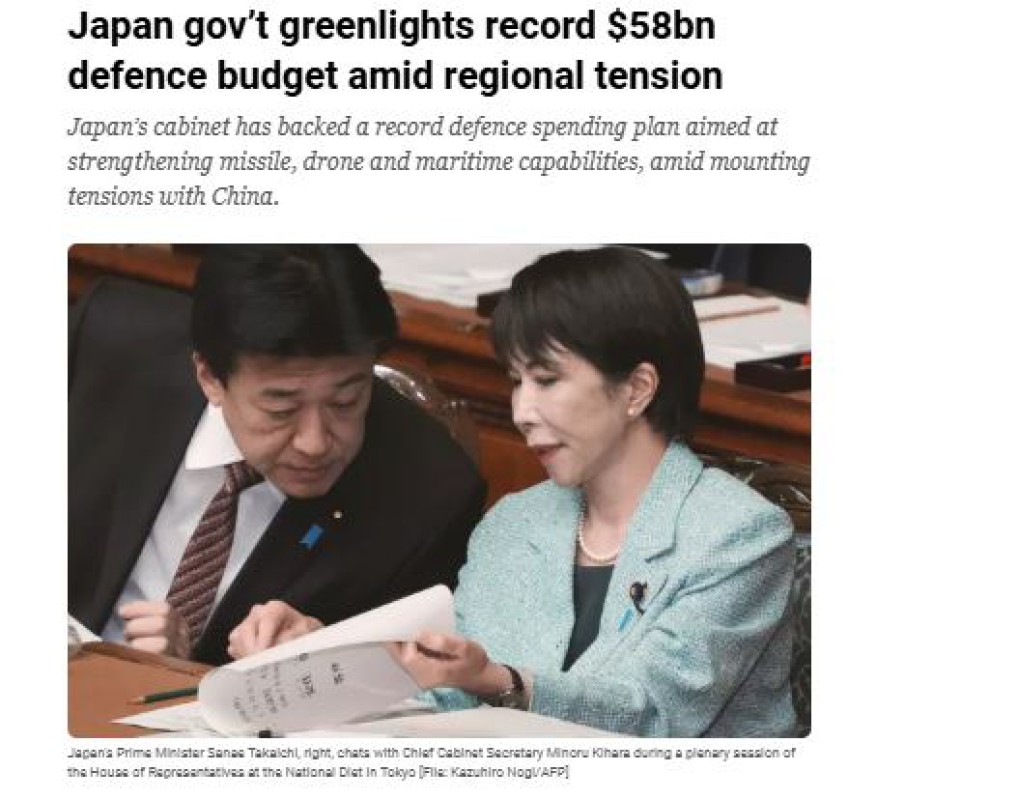 မြောက်ကိုရီးယား၊ တရုတ်နိုင်ငံတို့နှင့် တင်းမာမှုများရှိနေချိန်တွင် ဂျပန်အစိုးရက နိုင်ငံကာ ကွယ်ရေး အသုံး စရိတ်ကို စံချိန်တင်တိုးမြှင့်ရန် ခွင့်ပြုပေးလိုက်ကြောင်းသိရသည်။ ဂျပန်အစိုးရသည် ဒီဇင်ဘာလ (၂၆) ရက်က လာမည့်နှစ်တွင် အသုံးပြုမည့် ကာကွယ်ရေးအသုံးစရိတ်နှင့်ပတ် သက်ပြီး ဆွေးနွေးခဲ့ရာ (၂၀၂၆) ခုနှစ်တွင် ကာကွယ်ရေး အသုံးစရိတ်အဖြစ် အမေရိကန်ဒေါ်လာ (၅၈) ဘီလျံအထိ စံချိန်တင်သုံးစွဲရန်ခွင့်ပြုလိုက်ကြောင်း သိရသည်။