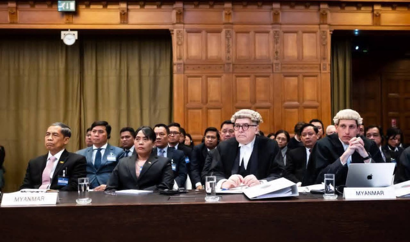 ပြည်ထောင်စုသမ္မတမြန်မာနိုင်ငံတော် နိုင်ငံတော်သမ္မတရုံးဝန်ကြီးဌာန(၂)ပြည်ထောင်စုဝန်ကြီး ဦးကိုကိုလှိုင်နှင့် ဥပဒေရေးရာဝန်ကြီးဌာန ပြည်ထောင်စုဝန်ကြီးနှင့် ပြည်ထောင်စုရှေ့နေချုပ် ဒေါက်တာ သီတာဦးတို့ ဦးဆောင်သည့် မြန်မာကိုယ်စားလှယ်အဖွဲ့သည် နယ်သာ လန်နိုင်ငံ၊ သည်ဟိတ်ဂ်မြို့ရှိအပြည်ပြည်ဆိုင်ရာတရားရုံး (ICJ)တွင် မြန်မာနိုင်ငံအတွက် တရားမျှတမှုနှင့် အမှန်တရားအတွက် ကြိုးစား ဆောင်ရွက်လျက်ရှိကြောင်း သိရသည်။