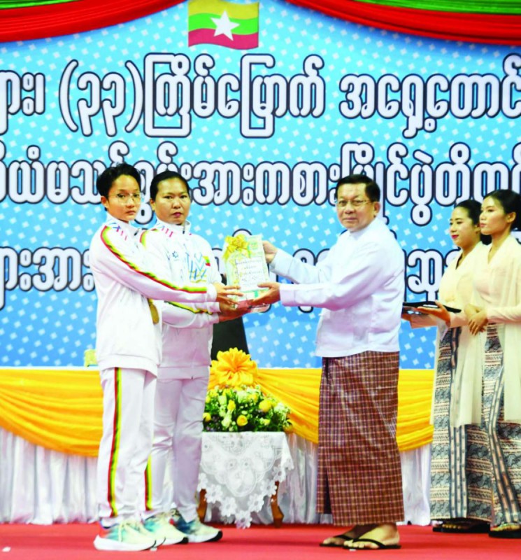 (၈) ကြိမ်မြောက် ကမ္ဘာ့ဗိုဗီနမ်ချန်ပီယံရှစ်ပြိုင်ပွဲ၊ (၁၆) ကြိမ်မြောက် ကမ္ဘာ့ကာယဗလနှင့် ကာယကြံ့ခိုင်မှုအားကစားပြိုင်ပွဲ၊ (၃၃) ကြိမ်မြောက် အရှေ့တောင်အာရှအားကစားပြိုင်ပွဲနှင့် (၁၃) ကြိမ်မြောက် အာဆီယံမသန်စွမ်းအားကစားပြိုင်ပွဲတို့တွင် မြန်မာအားကစားအဖွဲ့များအနေဖြင့် ရွှေတံဆိပ် (၂၆) ခု၊ ငွေတံဆိပ် (၄၇) ခု၊ ကြေးတံဆိပ် (၇၇) ခု စုစုပေါင်း ဆုတံဆိပ် (၁၅၀) ရရှိခဲ့သည့်အတွက် နိုင်ငံ့ဂုဏ်ဆောင်အားကစားသမားများနှင့် ပြိုင်ပွဲများတွင် ဆုတံဆိပ်များရရှိအောင် စွမ်းဆောင်ပေးခဲ့သည့် အုပ်ချုပ်၊ နည်းပြအဖွဲ့ (၂၈) ဖွဲ့တို့အတွက် နိုင်ငံတော်မှ ဂုဏ်ပြုချီးမြှင့်ငွေမှာ စုစုပေါင်း ငွေကျပ်သိန်းပေါင်း (၃၆၆၉၀) ဖြစ်ကြောင်း သိရသည်။