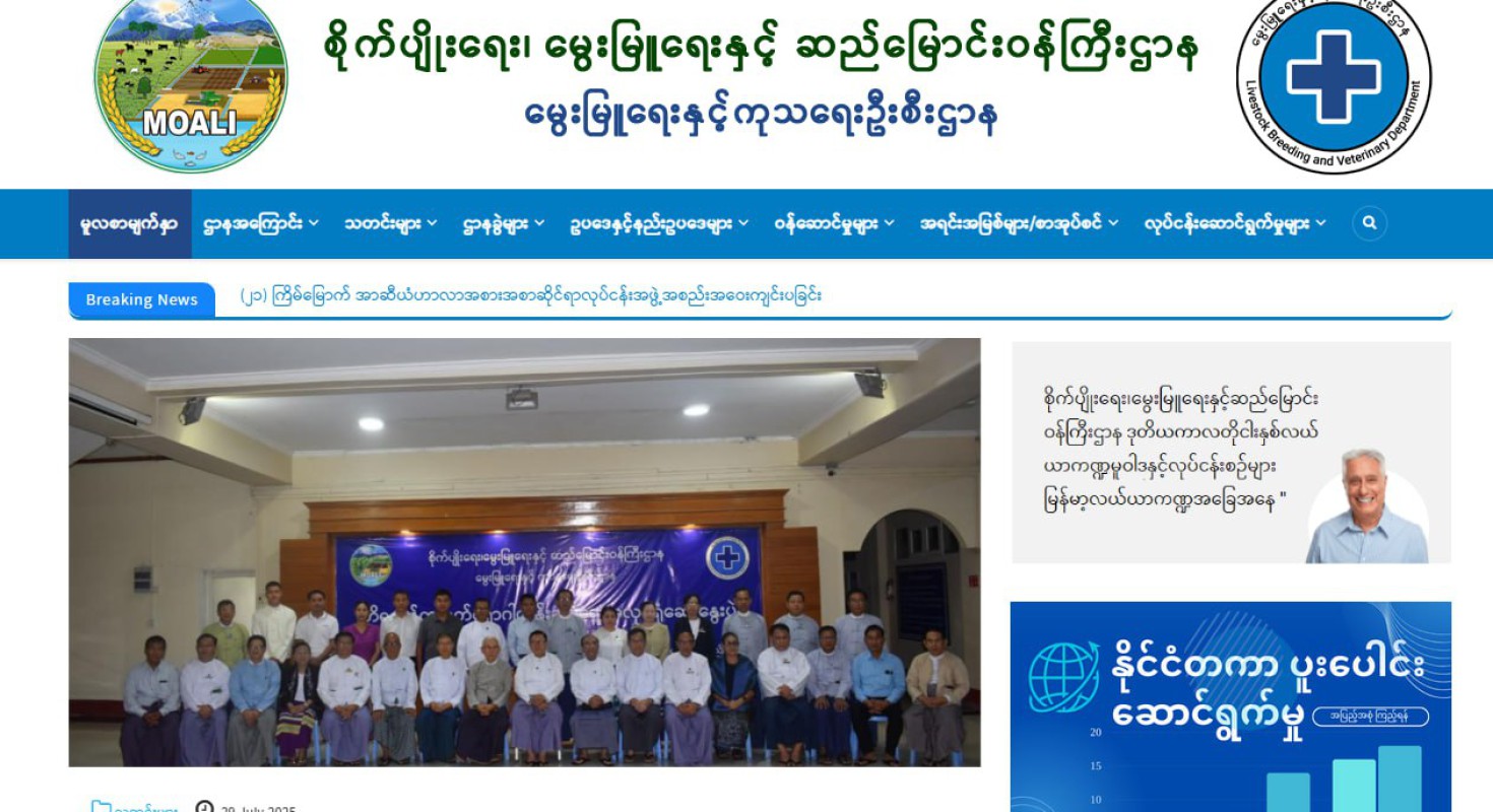 ေနျပည္ေတာ္ေကာင္စီနယ္ေျမ တိုင္းေဒသႀကီးႏွင့္ျပည္နယ္အတြင္းရွိ ခြင့္ျပဳလက္မွတ္မရွိဘဲ တိရစာၦန္ေဆးကုဝန္ေဆာင္မႈလုပ္ငန္းမ်ား ေဆာင္႐ြက္ေနသူမ်ားအေနျဖင့္သက္ဆိုင္ရာေမြးျမဴေရးႏွင့္ကုသေရးဦးစီးဌာနသို႔ေဖေဖာ္ဝါရီ (၁၅) ရက္ ေနာက္ဆုံးထားၿပီး ခြင့္ျပဳမိန႔္ေလွ်ာက္ထားရန္ ေမြးျမဴေရးႏွင့္ကုသေရးဦးစီးဌာနက အသိေပးထုတ္ျပန္ထားသည္။