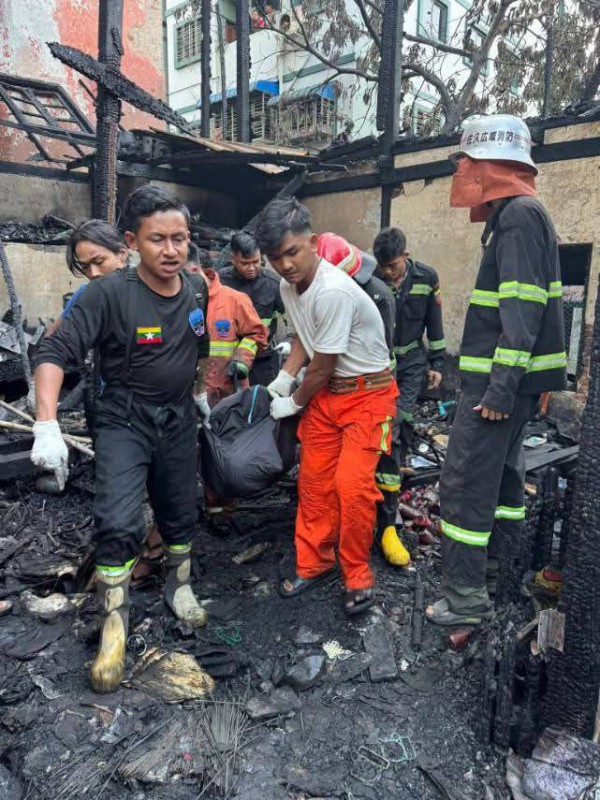 “အဲဒီမှာ ဆိုင်ရဲ့အပေါ်ထပ်မှာ ညအိပ်နေတဲ့ အသက် (၆၀) ဝန်းကျင်ရှိတဲ့ အမျိုးသမီး (၂) ဦး။ ညီအစ်မ (၂) ဦးလို့သိရပါတယ်။ သူတို့ကတော့ စိတ်မကောင်းစွာနဲ့ပဲ မီးလောင်မှုမှာ အသက်ဆုံးရှုံးသွားပါတယ်။ မီးကတော့ နာရီဝက်လောက်နေတော့ ငြှိမ်းသွားပါတယ်။ ကုန်မာပစ္စည်း တွေနဲ့ စက်ဘီးပစ္စည်းတွေနဲ့ သင်္ဘောဆေးတို့ပါတော့ လောင်ကျမ်းအားတော့ မြန်သွားတာပေါ့နော်”ဟု အထက်ပါ သတင်းရင်းမြစ်က ပြောသည်။