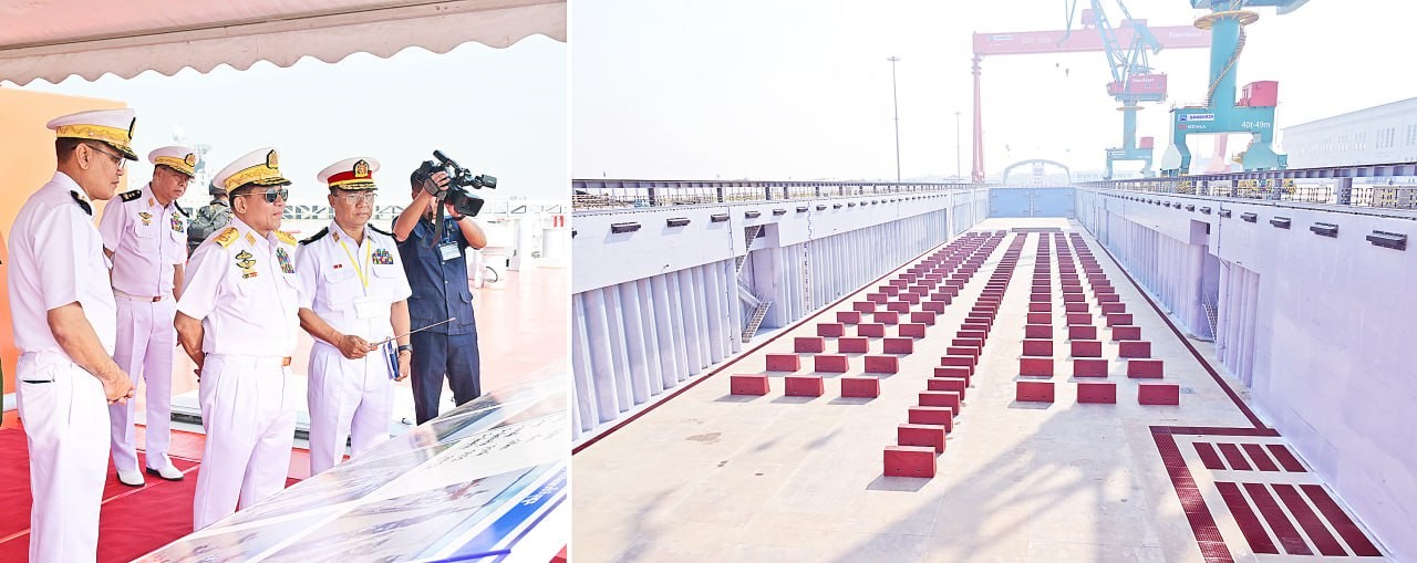 တပ်မတော်(ရေ) သာမက မြန်မာနိုင်ငံတွင်ပါ စွမ်းဆောင်ရည်နှင့် အရွယ်အစားအကြီးမားဆုံးဖြစ်လာမည့် တန် (၄၀,၀၀၀) ရေလုံလွန်းကျင်းနှင့် ဖရီဂိတ်စစ်ရေယာဉ်(သာလွန်မင်း) တပ်တော်ဝင်