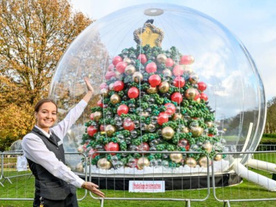အင်္ဂလန်နိုင်ငံရှိ ဟိုတယ်တစ်ခုတွင် မိုးပျံပူဖောင်း (၁) သိန်းဖြင့် ဖန်တီးထားသည့် ခရစ္စမတ်သစ်ပင်ကို ခင်းကျင်းပြသ